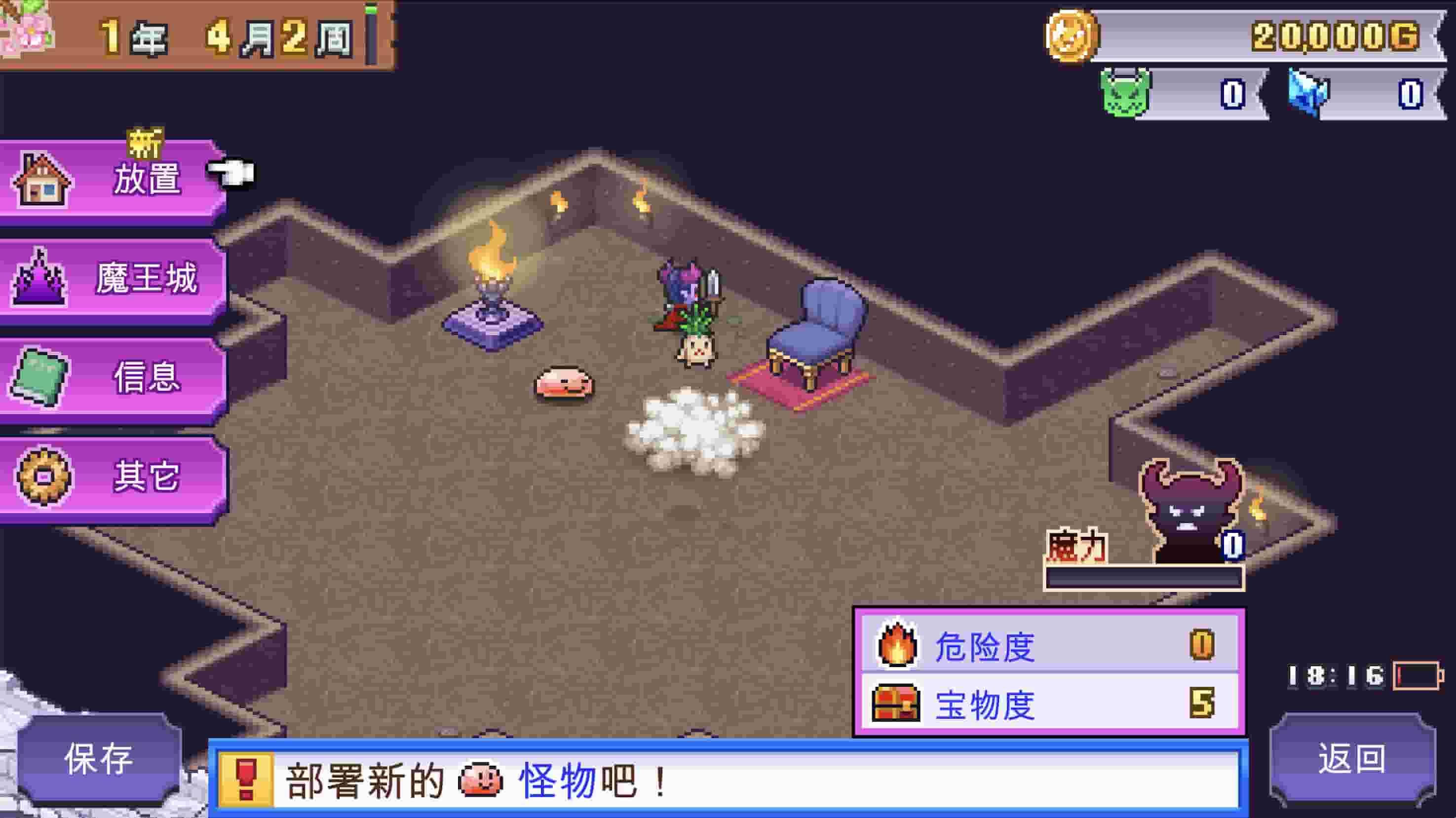 游戏简介 苹果iOS游戏 【魔王城物语】iPA下载 ,《Demon Castle Story》这是一款模拟经营游戏,你将把一座破败的古老城堡改造成邪恶的恶魔堡垒!招募独特的怪物作为你的爪牙,消灭胆敢踏入你领地的冒险者!建造石像鬼、祭坛和其他邪恶的装饰,提升城堡的神秘感,吸引更多怪物前来。喂食它们食物和其他物品,帮助它们成长,并争取它们的支持来抵御烦人的冒险者! 游戏截图 资源下载此资源仅限注册用户下载,请先登录 0 0
