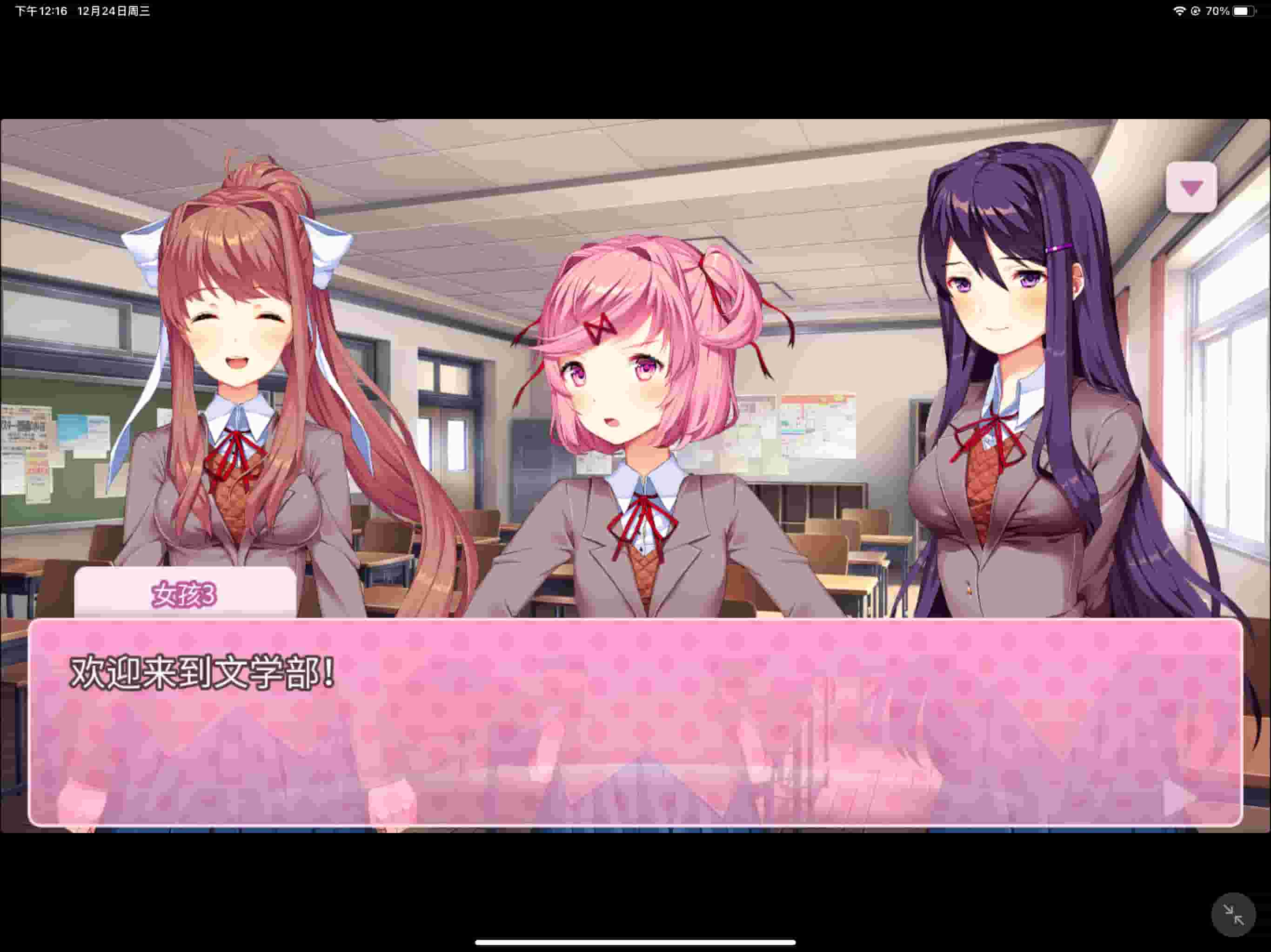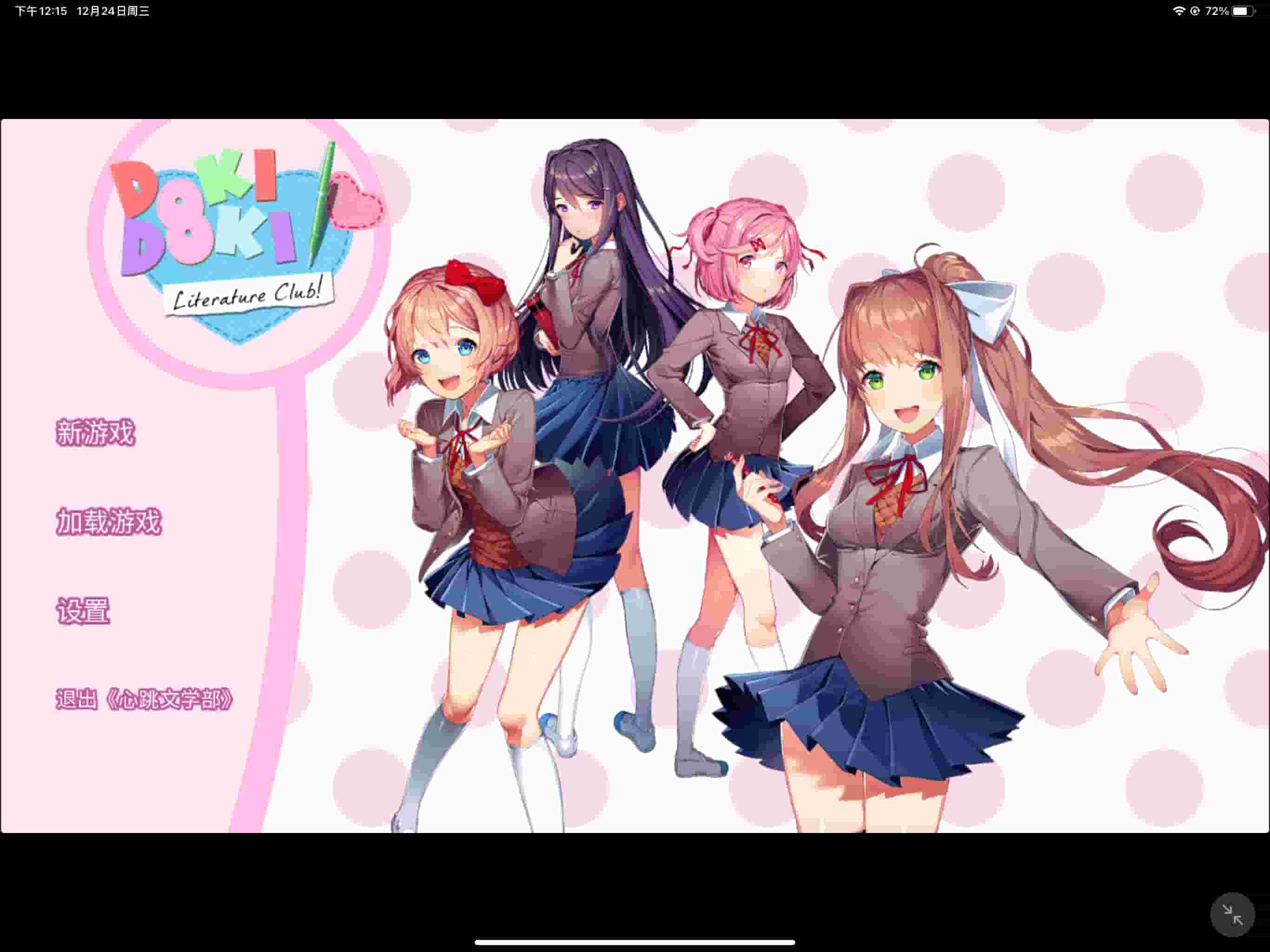 游戏简介 苹果iOS【心跳文学部】iPA下载,《Doki Doki Literature Club!》是一款带有恐怖元素的视觉小说游戏,剧情讲述主角Main Character在青梅竹马纱世里的邀请下加入文学部,与部长莫妮卡、副部长纱世里、部员夏树、优里四个高中生女孩展开互动,随着剧情深入,游戏逐渐展现其恐怖元素,揭示隐藏的秘密 。游戏通过多周目设定推进,玩家需反复游玩以解锁新内容和真相。iPA内置插件,默认解锁完整游戏。 游戏截图 资源下载此资源仅限注册用户下载,请先登录 4 0