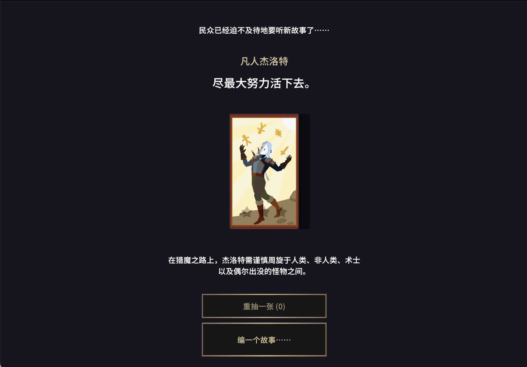 苹果iOS游戏 【王权:巫师】iPA下载 ,《Reigns: The Witcher》你将扮演利维亚的杰洛特,这位狼学派的传奇怪物猎人,在他的挚友吟游诗人丹德里恩的醉酒歌谣中为生存而战。你会猎杀怪物,惹恼当地居民,还是泡个热水澡?透过吟游诗人的视角,探索这道德沦丧的世界。左右滑动,追逐荣耀,或寻觅死亡!谱写一首振奋人心的史诗,或许有一天,你将获得永生。当前版本iPA由用户「PrintedAttic94」分享。
